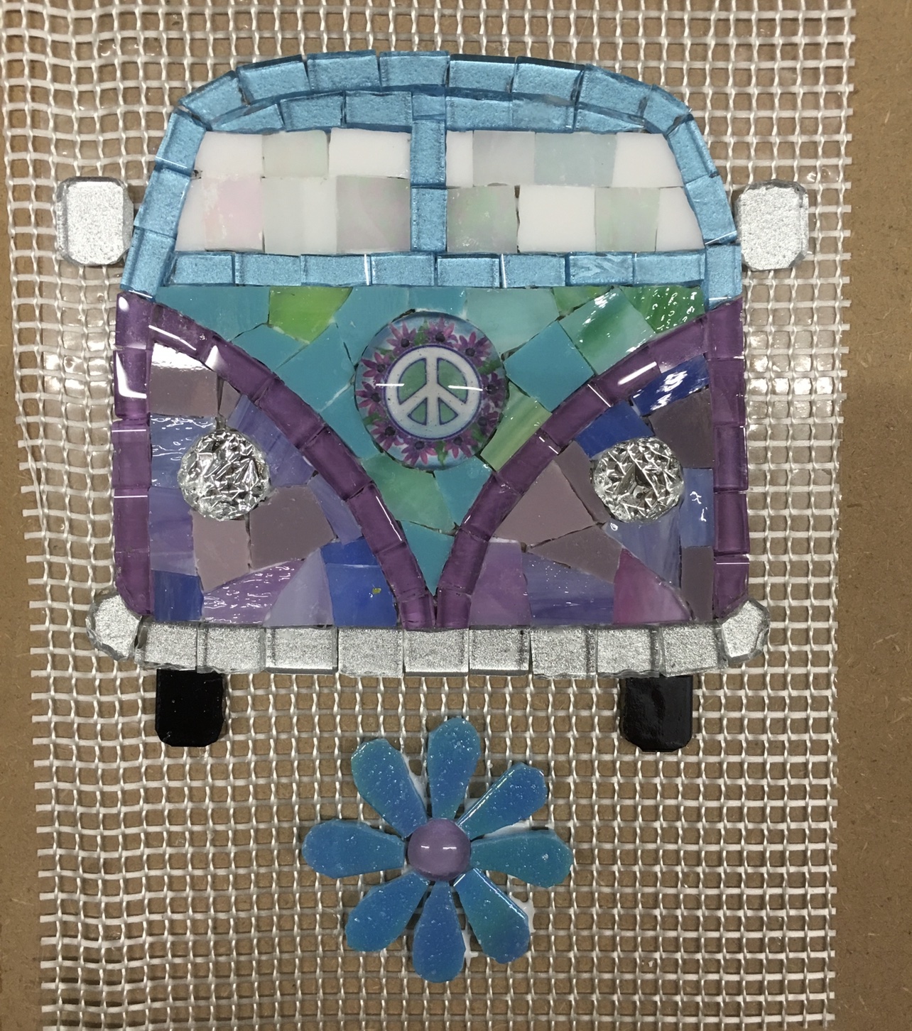 A fun hippie mosaic Volksie bus insert to use in your work or on it’s own on a wall or fence. These inserts are very attractive and will complement any design beautifully. It is plus/minus 3mm thick but some are thicker in parts due to bubbles.